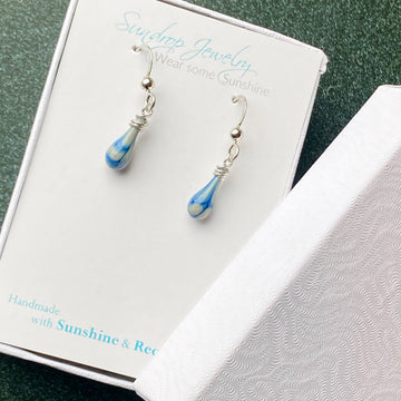 Sun-melted glass earrings, necklaces and bracelets, set in recycled Argentium silver