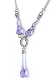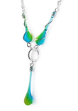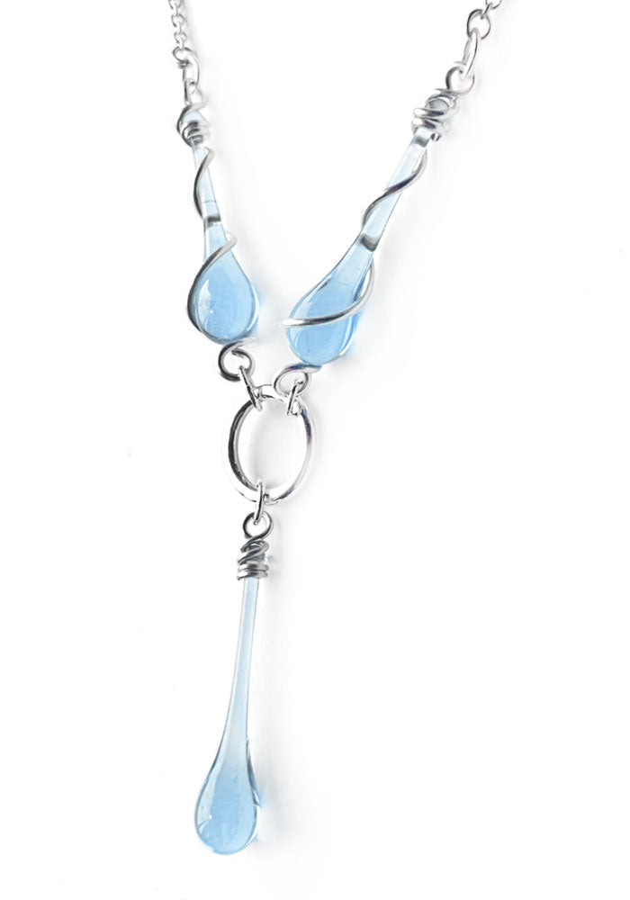 We use stained art glass or recycled bottle glass to make the droplets themselves. All wire and ear hooks are hypo-allergenic sterling silver, and the sterling silver wire is 100% recycled. Necklaces come on sterling silver chain.