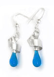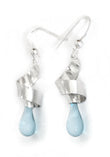 A ribbon of swirling silver sets off the dainty droplets of sun-melted glass in these fun earrings.