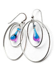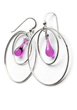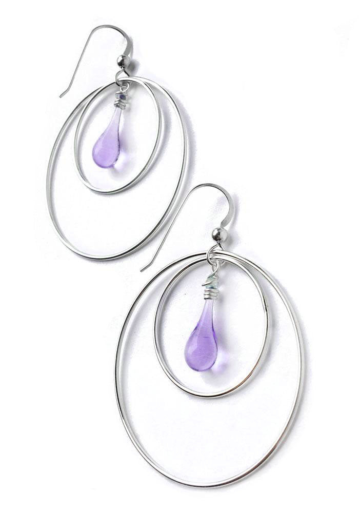 These double hoop earrings with a dainty drop of glowing glass will carry you through any day - or night! Slightly larger than the Small Eclipse, these are sized just right to make a bit of a statement. The tiny pop of color is framed in circles of sparkling silver, with each element swinging freely - a glittering motion that is sure to catch the eye.