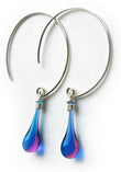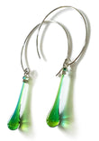 A single teardrop of sun-melted glass dangles from a delicate circle of silver. The curvature of these chic semi-circles continues right through your earlobe, completing the stylish arc.