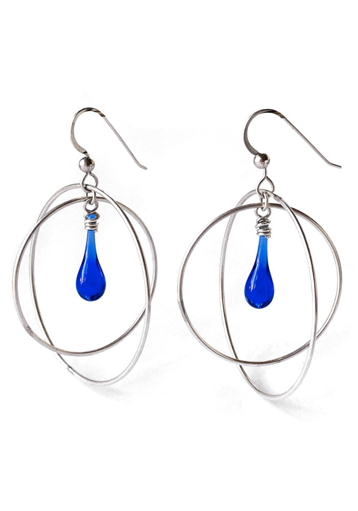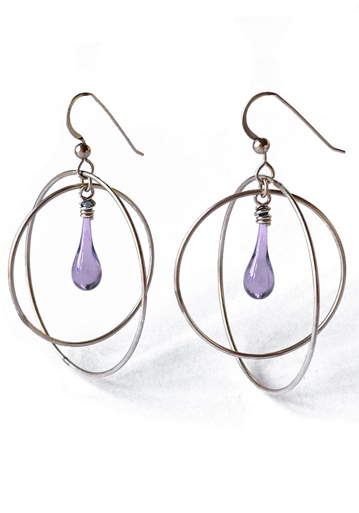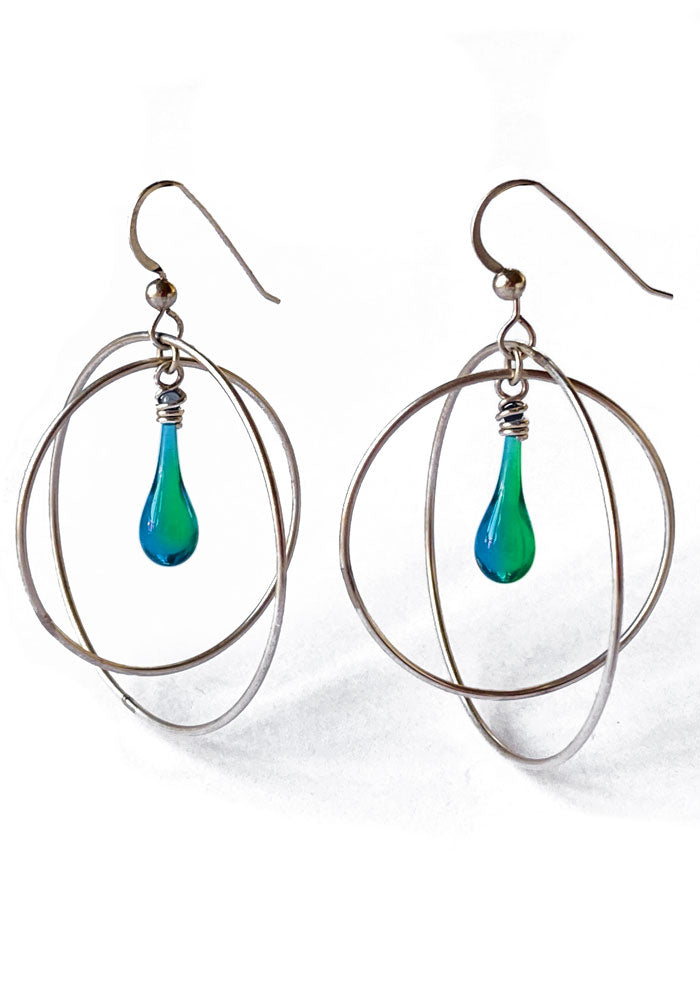These free swinging gyroscope earrings with a dainty drop of glowing glass will carry you through any day - or night! Sized just right for daily wear, these earrings will become your new “go to” earrings.
