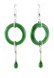 100% recycled glass earrings, from the sun-melted glass drops and sliced rings to the sterling silver metalwork and hooks. Even the packaging is recycled!