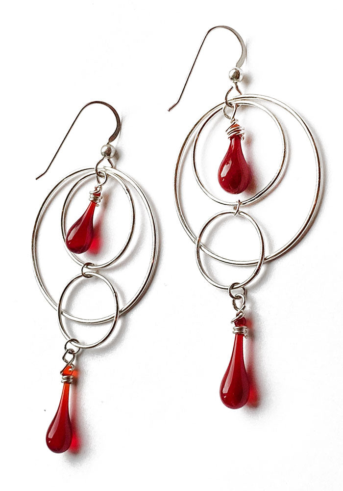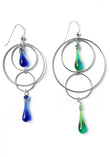Add some celestial style to your wardrobe! Each element swings freely in these earrings, with glittering motion that is sure to catch the eye. Lightweight and lighthearted, these overlapping silver circles and vibrant drops of sun-melted glass chime gently together - music of the heavens singing in your ears.