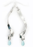 Long looping ribbons of swirling silver sets off the dainty droplets of sun-melted glass in these fun earrings.