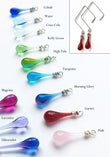 We use stained art glass or recycled bottle glass to make the droplets themselves. All wire and ear hooks are hypo-allergenic sterling silver, and the sterling silver wire is 100% recycled. Necklaces come on sterling silver chain.