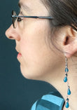 We use stained art glass or recycled bottle glass to make the droplets themselves. All wire and ear hooks are hypo-allergenic sterling silver, and the sterling silver wire is 100% recycled. Necklaces come on sterling silver chain.