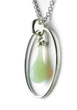 With a nod to the past, this modern take on the traditional cameo necklace makes a perfect pendant for everyday wear. Made from sun-melted glass from a broken vintage jadeite plate, the pale milky green glass drop is framed in a smooth oval of recycled sterling silver.