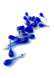 We use stained art glass or recycled bottle glass to make the droplets themselves. All wire and ear hooks are hypo-allergenic sterling silver, and the sterling silver wire is 100% recycled. Necklaces come on sterling silver chain.
