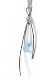 A pale, transparent blue evokes the smooth flow of molten glass, frozen forever in an elegant drop of glass.