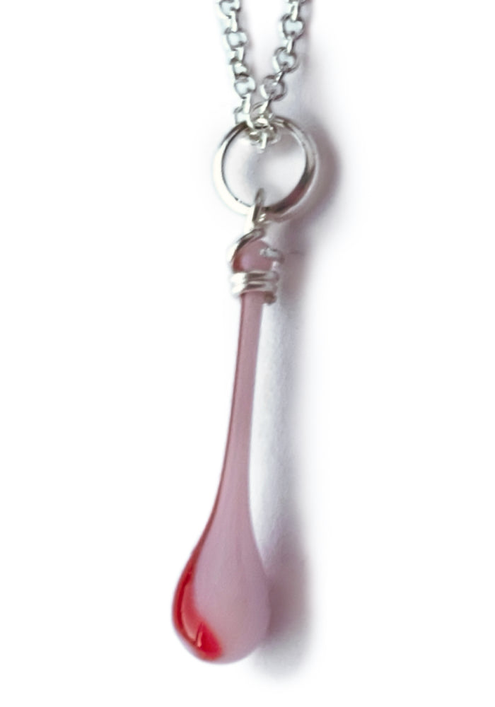 This opaque pink pendant has a dramatic red streak down the side, adding the perfect minimalist touch to your daily attire and helps you make a casually elegant statement.