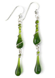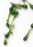 This olive green glass swirls and bubbles within each elegant droplet - each one is unique! This limited edition color comes from an unusual piece of swirled stained glass that can no longer be found - so when it's gone, it's gone!