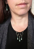 We use stained art glass or recycled bottle glass to make the droplets themselves. All wire and ear hooks are hypo-allergenic sterling silver, and the sterling silver wire is 100% recycled. Necklaces come on sterling silver chain.