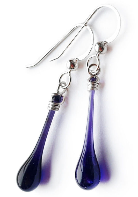 The deep, dark purple of these simple yet elegant glass earrings evoke the smooth flow of...