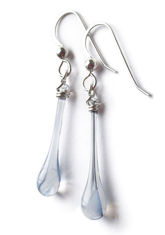 A hazy cloud of white and black swirls within these simple yet elegant glass earrings, like smoke from...