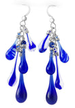 We use stained art glass or recycled bottle glass to make the droplets themselves. All wire and ear hooks are hypo-allergenic sterling silver, and the sterling silver wire is 100% recycled. Necklaces come on sterling silver chain.